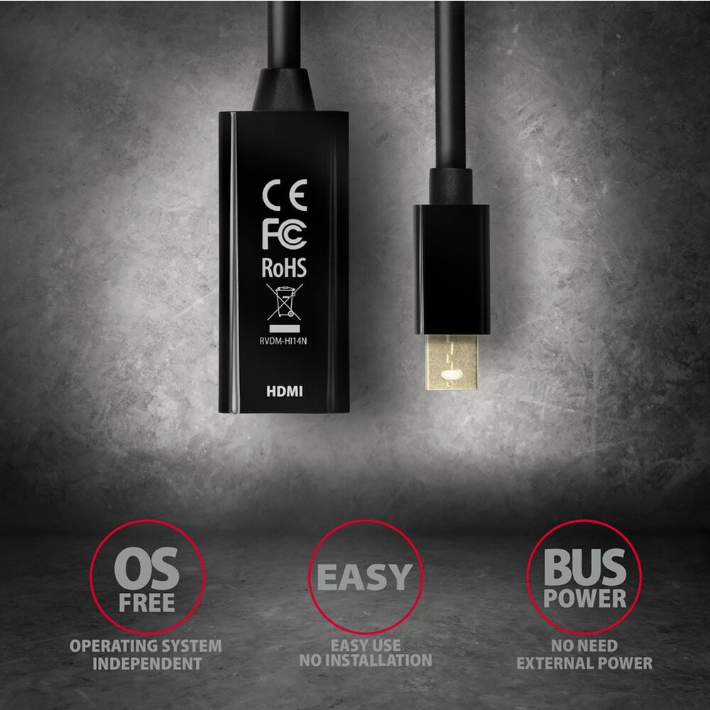 AXAGON Mini DisplayPort/HDMI 1.4 redukce 0,18m černá