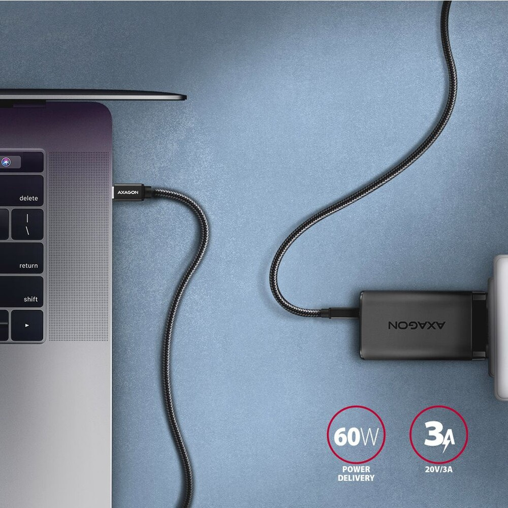 AXAGON USB-C/USB-C napájecí kabel 60W 2m černý
