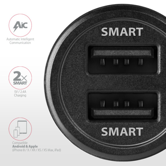 AXAGON PWC-5V5, SMART nabíječka do auta, 2x port 5V-2.4A + 2.4A, 24W