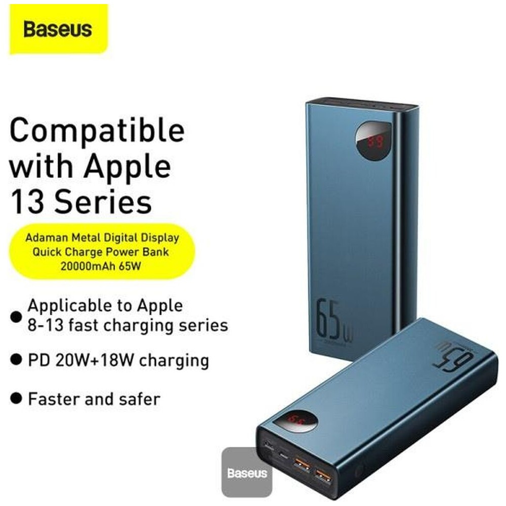 Baseus Adaman Metal 20000mAh, 65W modrá