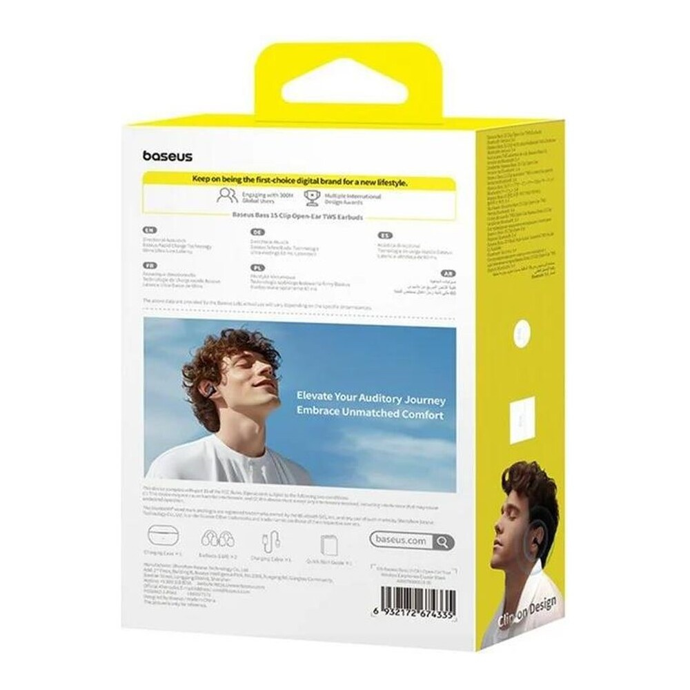 Baseus Bass 15 Clip Open Ear bezdrátová sluchátka černá