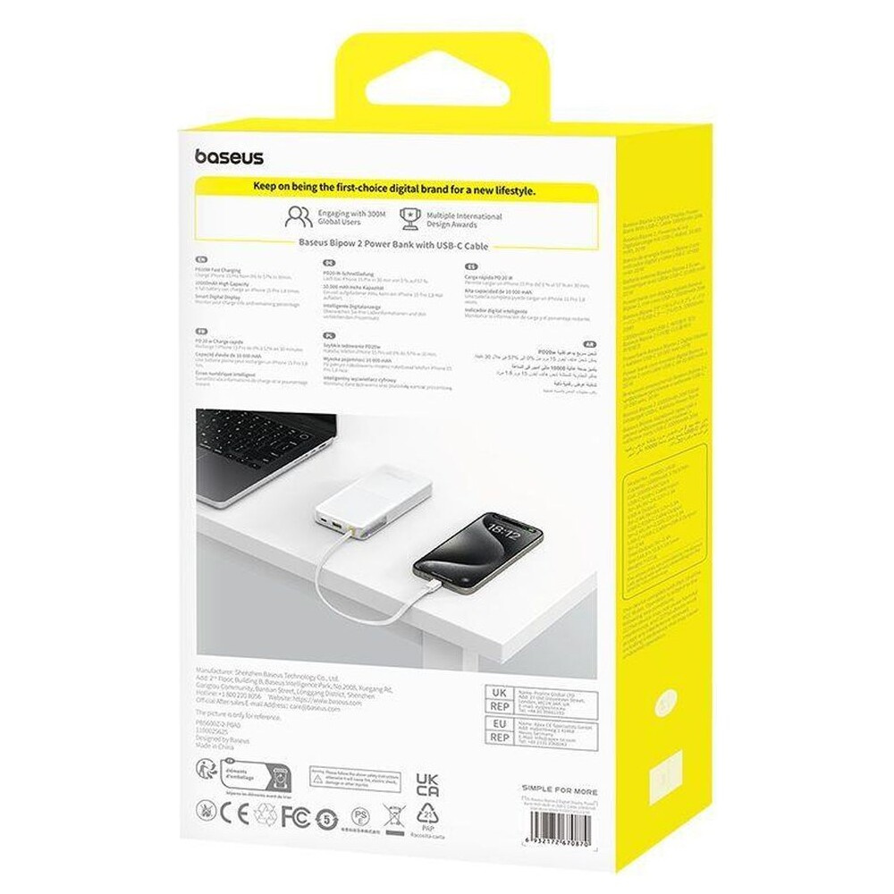 Baseus Bipow 2 10000mAh, 20W bílá