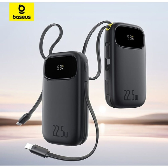 Baseus EnerFill FC31 Qpow 3 10000mAh powerbanka, 22,5W, s kabelem USB-C a Lightning černá
