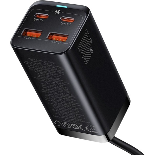 Baseus GaN3 rychlonabíječka 2xUSB-A, 2xUSB-C 100W černá
