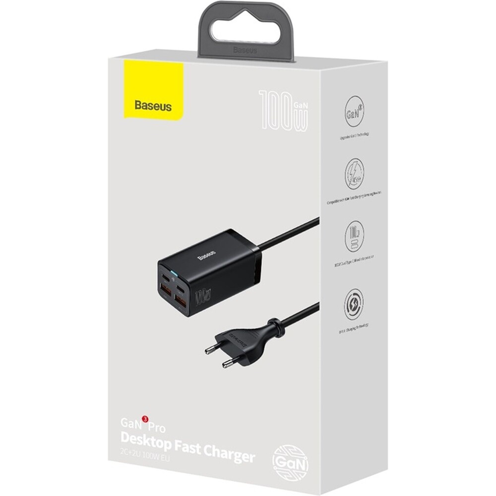 Baseus GaN3 rychlonabíječka 2xUSB-A, 2xUSB-C 100W černá
