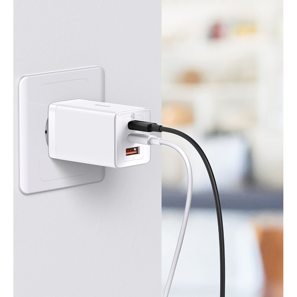 Baseus GaN5 Pro rychlonabíječka 65W 2x USB-C, 1x USB bílá