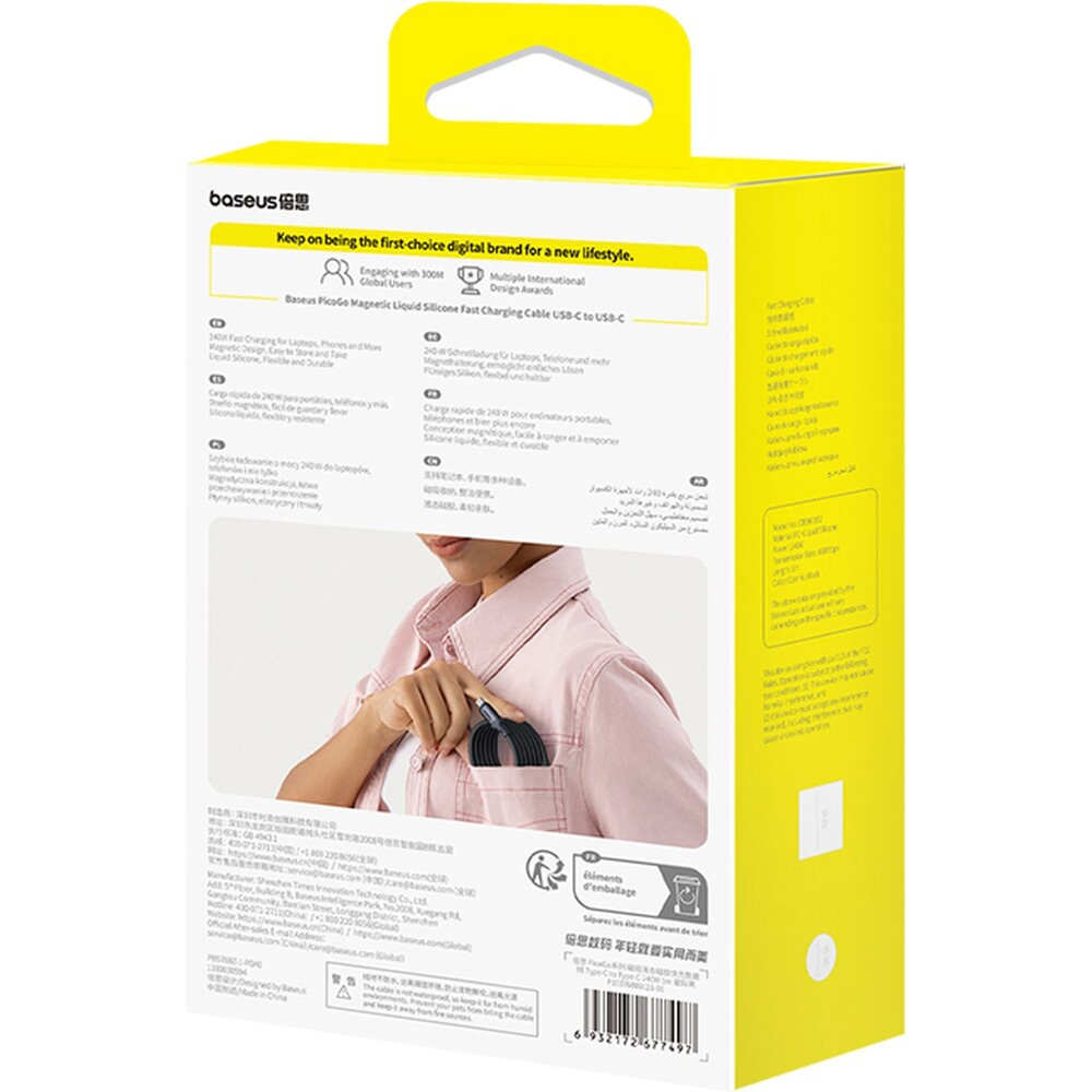 Baseus PicoGo USB-C/USB-C magnetický napájecí kabel 240W 1m černý