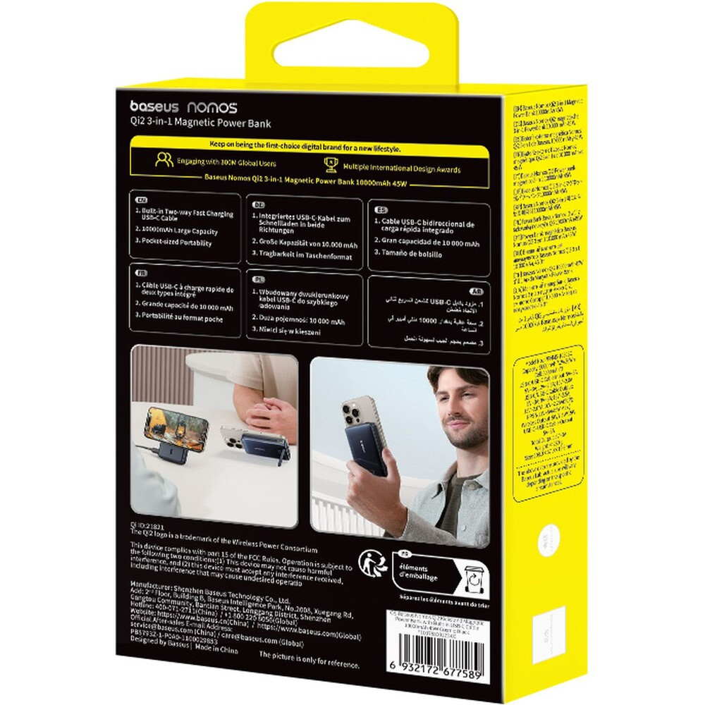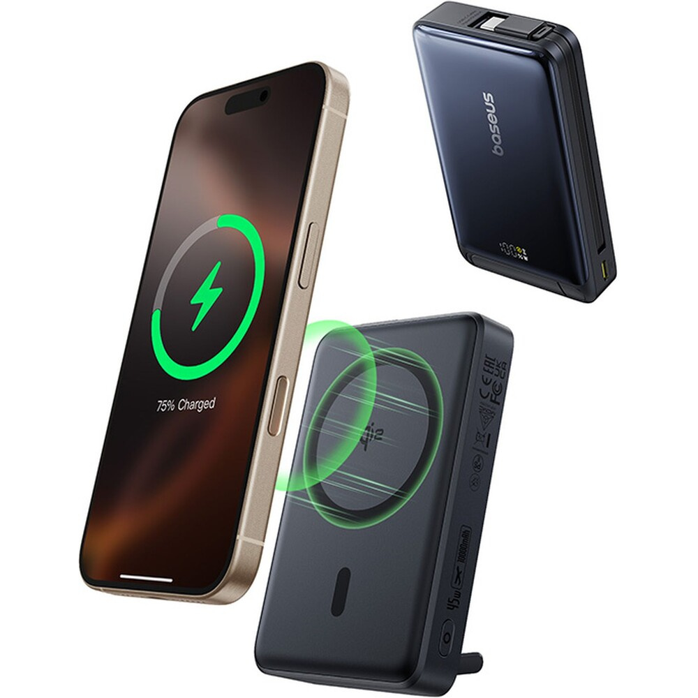 Baseus Nomos Qi2 powerbanka 10000mAh 45W s kabelem USB-C černá
