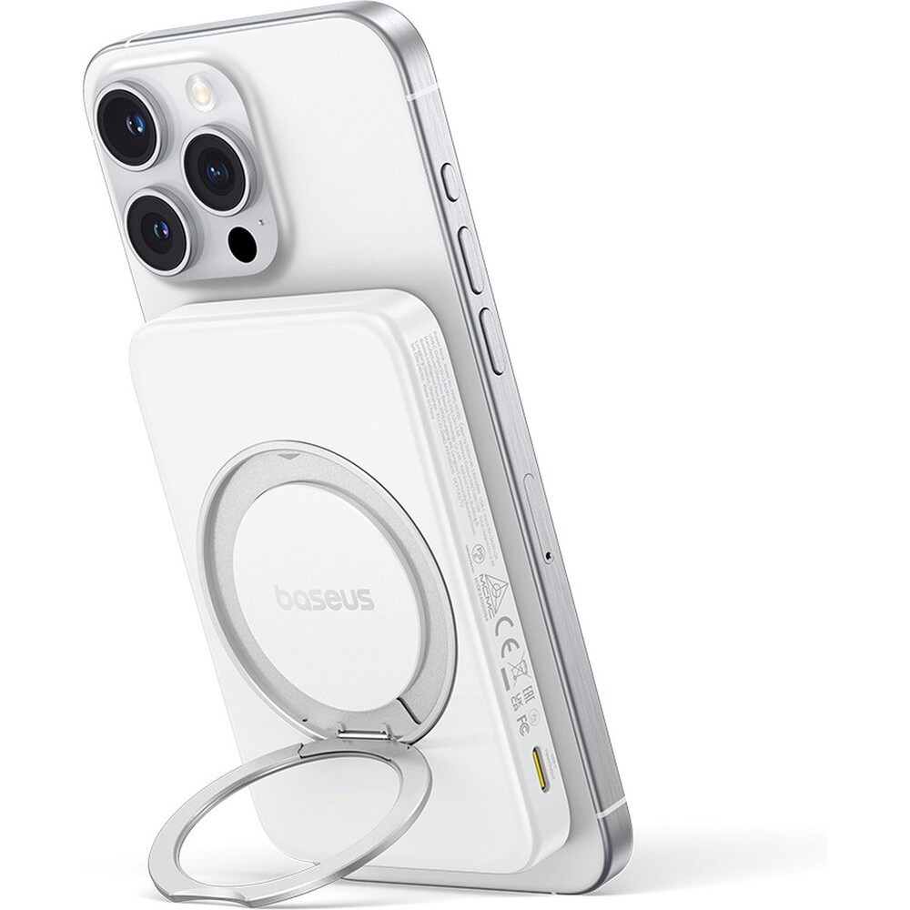 Baseus PicoGo Qi2 s otočným stojanem a bezdrátovým nabíjením powerbanka 5000mAh 20W USB-C bílá