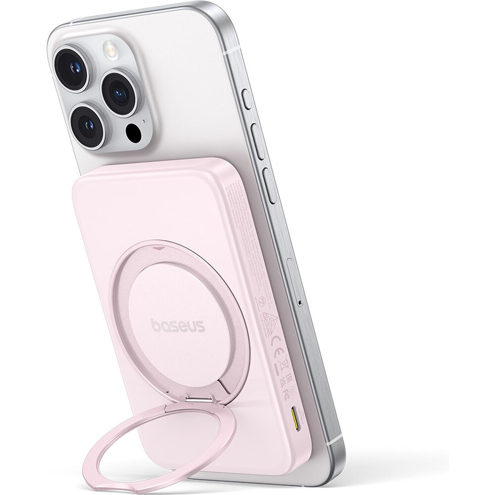 Baseus PicoGo Qi2 s otočným stojanem a bezdrátovým nabíjením powerbanka 5000mAh 20W USB-C růžová