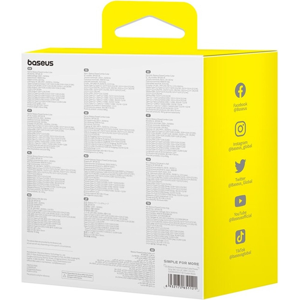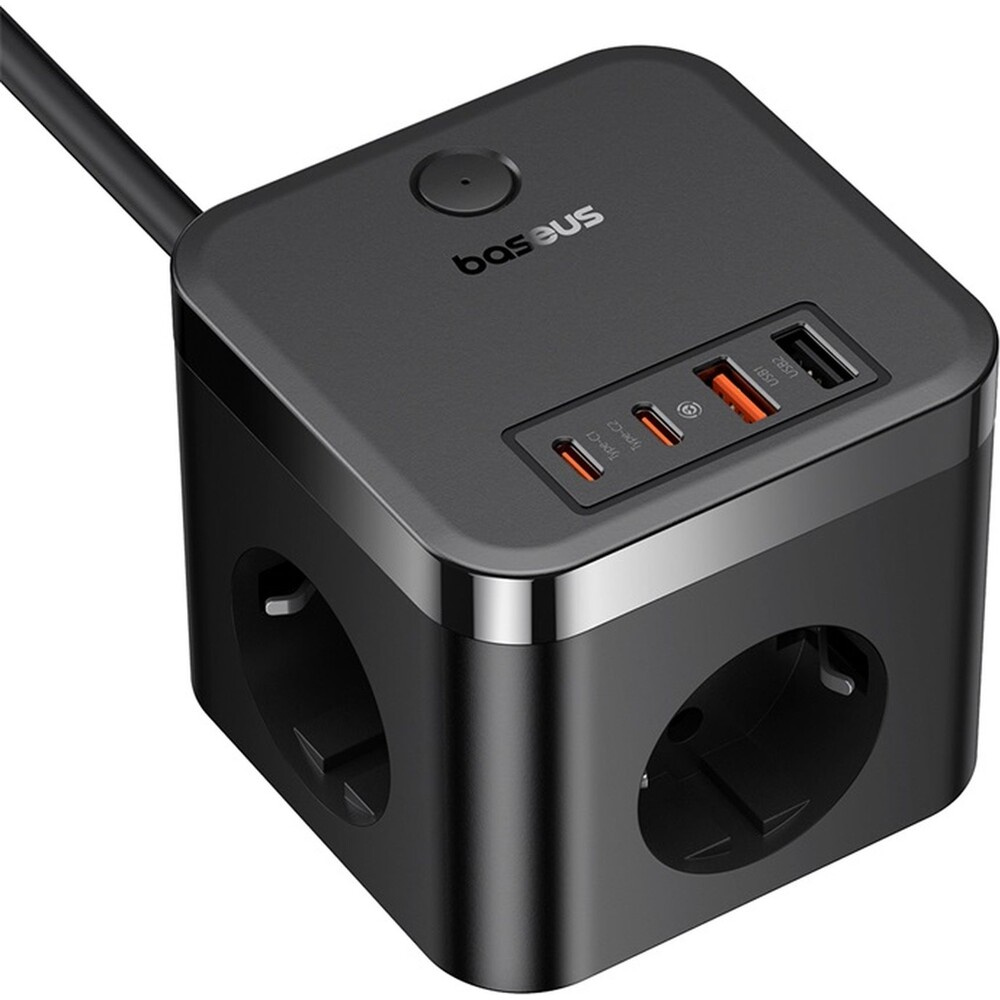 Baseus PowerCombo Cube prodlužovací kabel 3x zásuvka + 2x USB + 2x USB-C 30W 1.5m černý