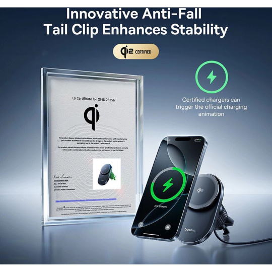 Baseus PrimeTrip VC1 Pro držák do auta s bezdrátovým nabíjením Qi2 do ventilační mřížky černý