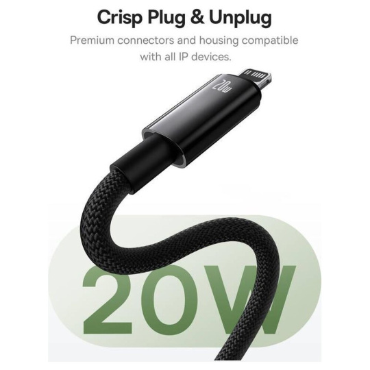 Baseus Tungsten Gold USB-C/Lightning magnetický napájecí kabel 20W 1m černý