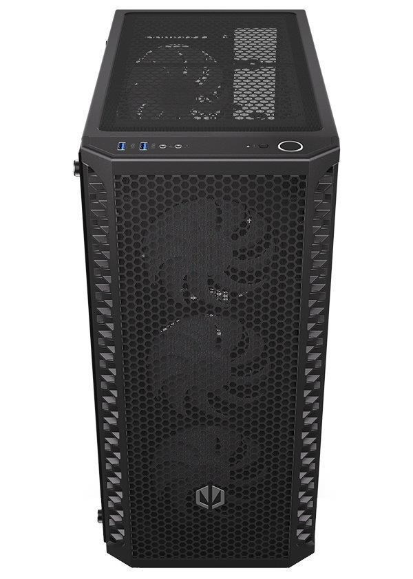 Skříň formátu Middle Tower s průhlednou bočnicí z tvrzeného skla nabízí dvě 2,5" pozice pro SSD disky a dvě 3,5" pozice pro pevné disky. Na horní části se nachází dva USB 3.0 porty, sluchátkový výstup a audio vstup pro mikrofon. Vybavena je čtyřmi 120 mm ventilátory s ARGB podsvícením, které spolu s perforovaným čelním panelem zajišťují dostatečné proudění vzduchu. Důmyslné řešení umožňuje pohodlné umístění až 360 mm dlouhého výměníku vodního chlazení na přední straně. Ve skříni je dostatek prostoru pro chladič CPU do výšky až 161 mm a grafickou kartu o délce až 350 mm. Dodávána je bez zdroje. Součástí je také sada prachových filtrů.