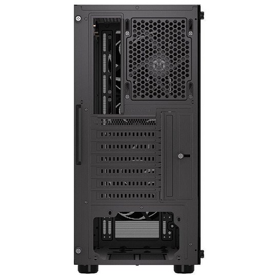 Skříň formátu Middle Tower s průhlednou bočnicí z tvrzeného skla nabízí dvě 2,5" pozice pro SSD disky a jednu 3,5" pozici pro pevný disk. Na horní části se nachází dva USB 3.0 porty, sluchátkový výstup a audio vstup pro mikrofon. Vybavena je čtyřmi 120 mm ventilátory, které spolu s perforovaným čelním panelem zajišťují dostatečné proudění vzduchu. Důmyslné řešení umožňuje pohodlné umístění až 360 mm dlouhého výměníku vodního chlazení na přední straně. Ve skříni je dostatek prostoru pro chladič CPU do výšky až 161 mm a grafickou kartu o délce až 315 mm. Dodávána je bez zdroje. Součástí je také sada prachových filtrů.