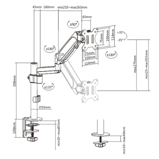 | Rozsah naklánění | +35° ~ -35° |