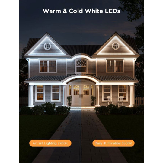 Venkovní chytré LED pásky Govee Outdoor Pro udělají z vaší zahrady designový skvost. Díky technologii RGBICWW zobrazují až 57 barev najednou a celkově umí až 16 milionů barev. Navíc je pásek vybavený bílými diodami pro věrnou reprodukci odstínů bílé od studené, přes neutrální po teplou. Určitě si vyberete z více 64 režimů osvětlení. Při pořádání zahradní party pak přijdou vhod režimy vizualizace hudby. Nebo si pomocí módu DIY nastavte svoje barevné kombinace podle vlastního výběru. Příkazy můžete zadat také hlasem přes Siri, Alexu nebo Google Assistant, přes aplikaci Govee Home, Google Home na chytrém telefonu nebo tabletu. Světlo má celkovou délku 10 metrů a jeho instalace je velice jednouchá. Pomocí časovače můžete světla zapínat a vypínat automaticky podle západu a východu slunce.