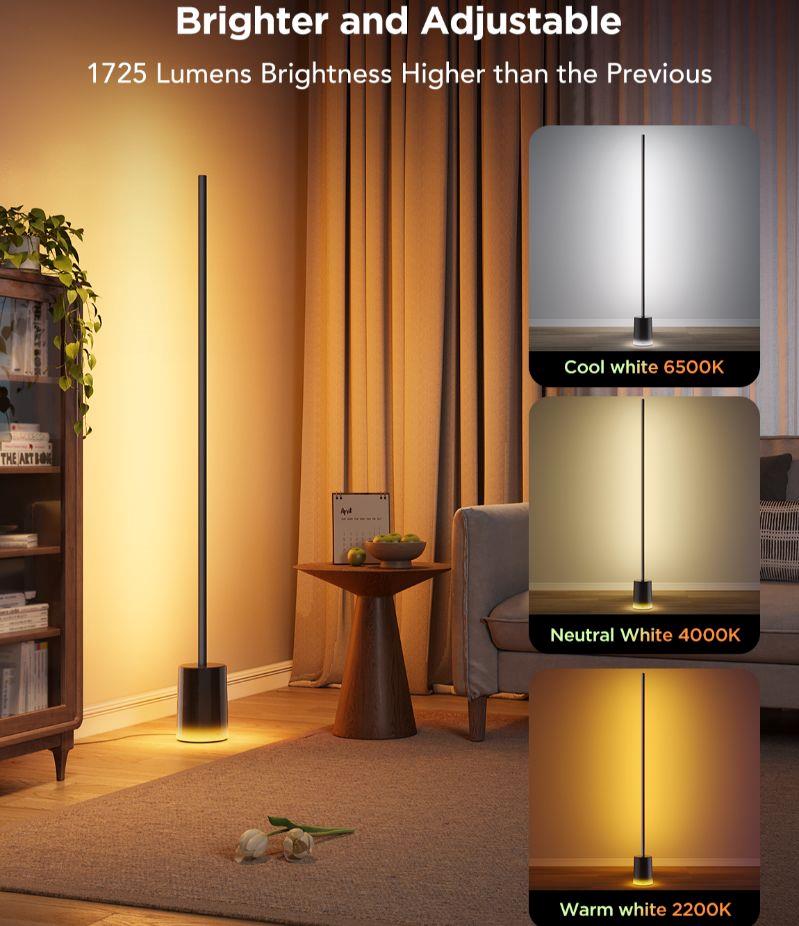 Floor Lamp 2 je nová generace podlahových lamp od Govee. Novinka je minimalistická podlahová lampa, navržená, aby perfektně zapadla do jakéhokoliv interiéru. Jednoduše se hodí všude, protože je ve zhasnutém stavu velmi nenápadná. Vše se změní po aktivaci, kdy se probere jejích 1725 lumenů. Díky diodám s technologií 4 v 1 RGBICWW dosahuje světlo ohromující intenzity. K dispozici je přes 16 milionů barev nebo bílá laditelná od 2200 do 6500 K. Lampa měří téměř 1,52 metru, ale zabírá minimální prostor a lze ji tak umístit doslova kamkoliv. Nejvíce jí to však sluší v rohu, kdy osvítí maximální prostor za sebou a vykouzlí na vaše zdi úžasně plynulé barevné přechody. Životnost lampy je u Govee standardních 50.000 hodin. Ovládání je možné aplikací Govee Home, Google Home, pomocí asistentů Google, Apple i Amazon. Nově je k připojení nabízen i protokol MATTER, takže lampu lze používat s většinou současných smart home systémů. Pro maximální pohodlí v balení naleznete i klasický dálkový ovladač, který je kdykoliv v pohotovosti, připnutý přímo k lampě. Samozřejmostí jsou přednastavené scény, několik režimů synchronizace s hudbou a pokud si ani tak nevyberete, čeká na vás DIY režim, který vám dá 100% kontrolu při které je jediný limit vaše fantazie.