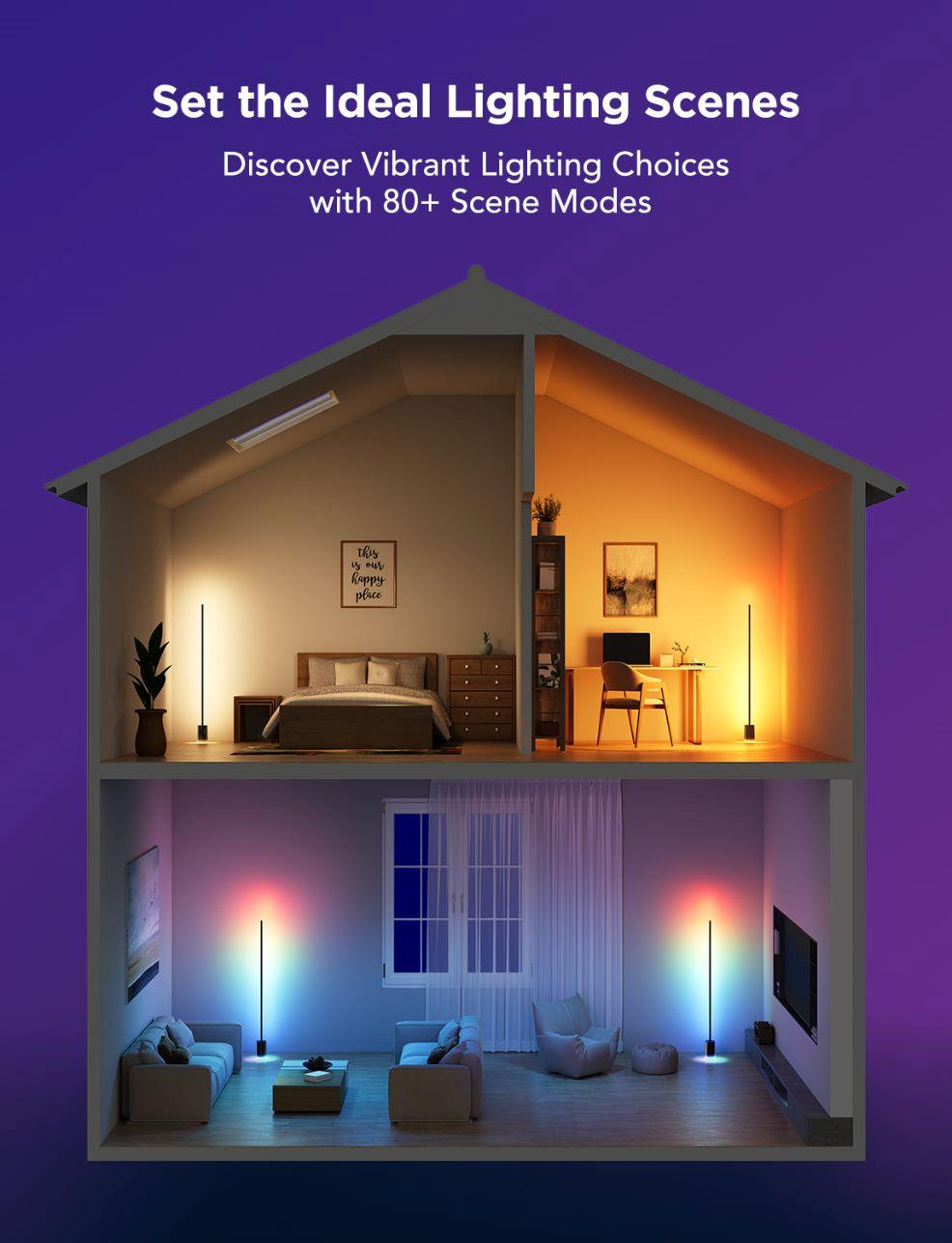 Špičková technologie RGBICWW: Vychutnejte si barevné přechody 16 milionů barev, teplé i studené bílé odstíny v rozsahu 2200 K až 6500 K a jas 1725 lumenů. Připravte dokonalou atmosféru pro setkání, večírky nebo čtení. Dejte svému prostoru barvy a využijte ho na 100 %.