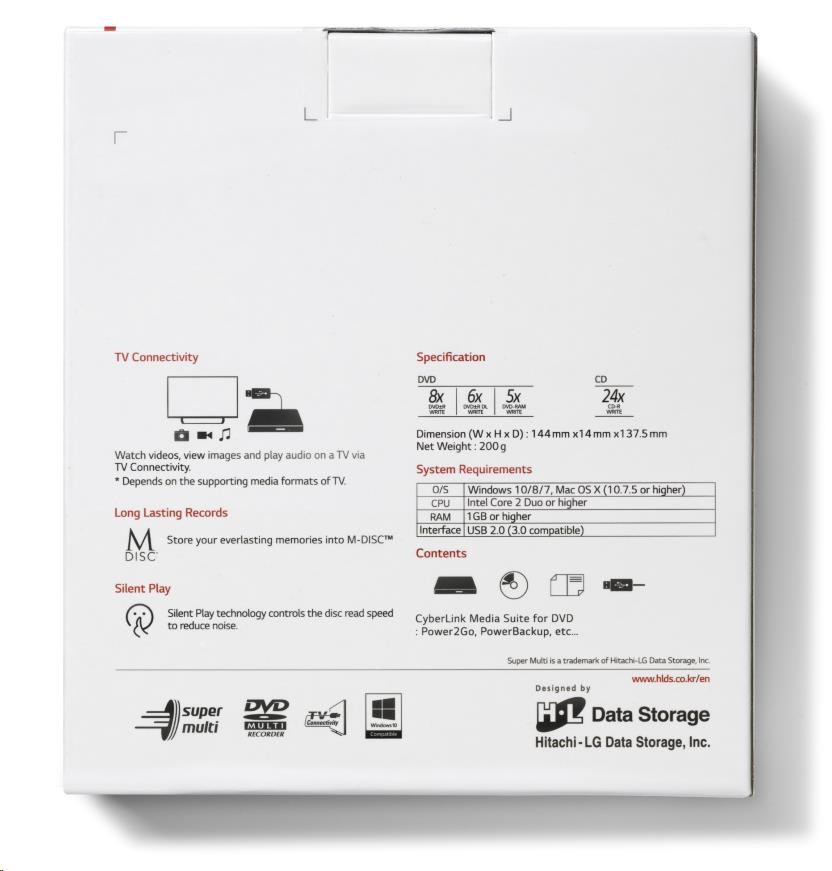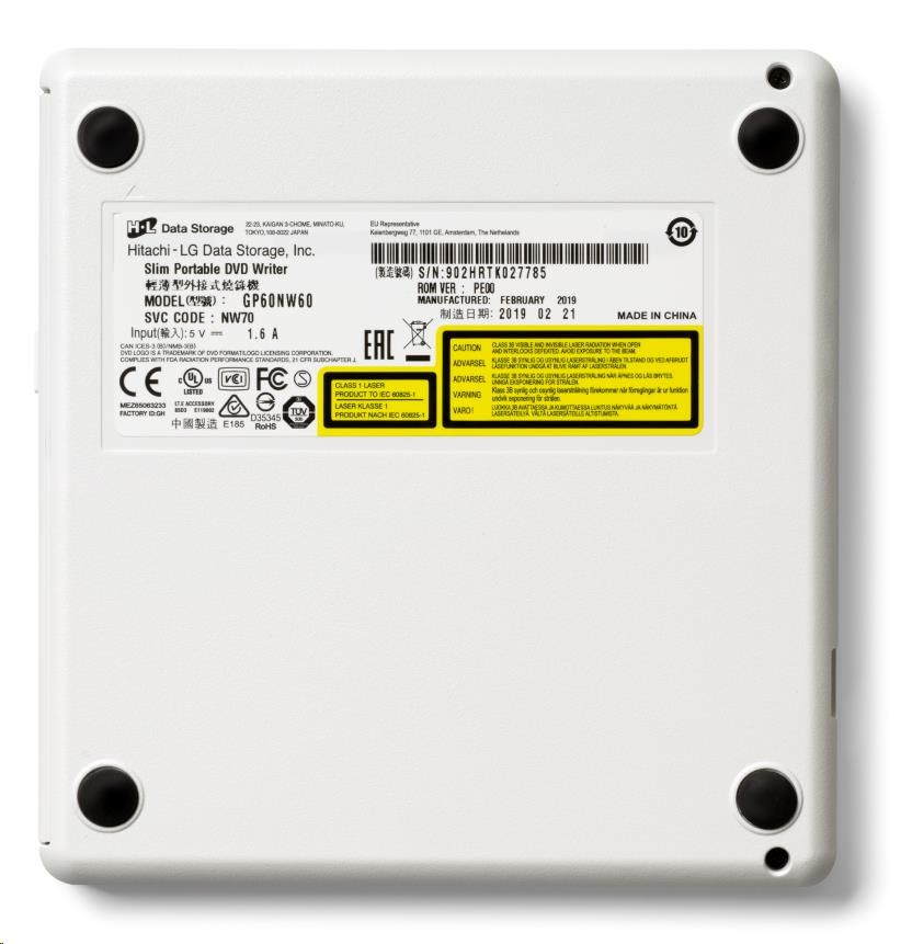 BAZAR - HITACHI LG - externí mechanika DVD-W/CD-RW/DVD±R/±RW/RAM GP60NW60, Slim, White, box+SW - Poškozený obal (Komplet