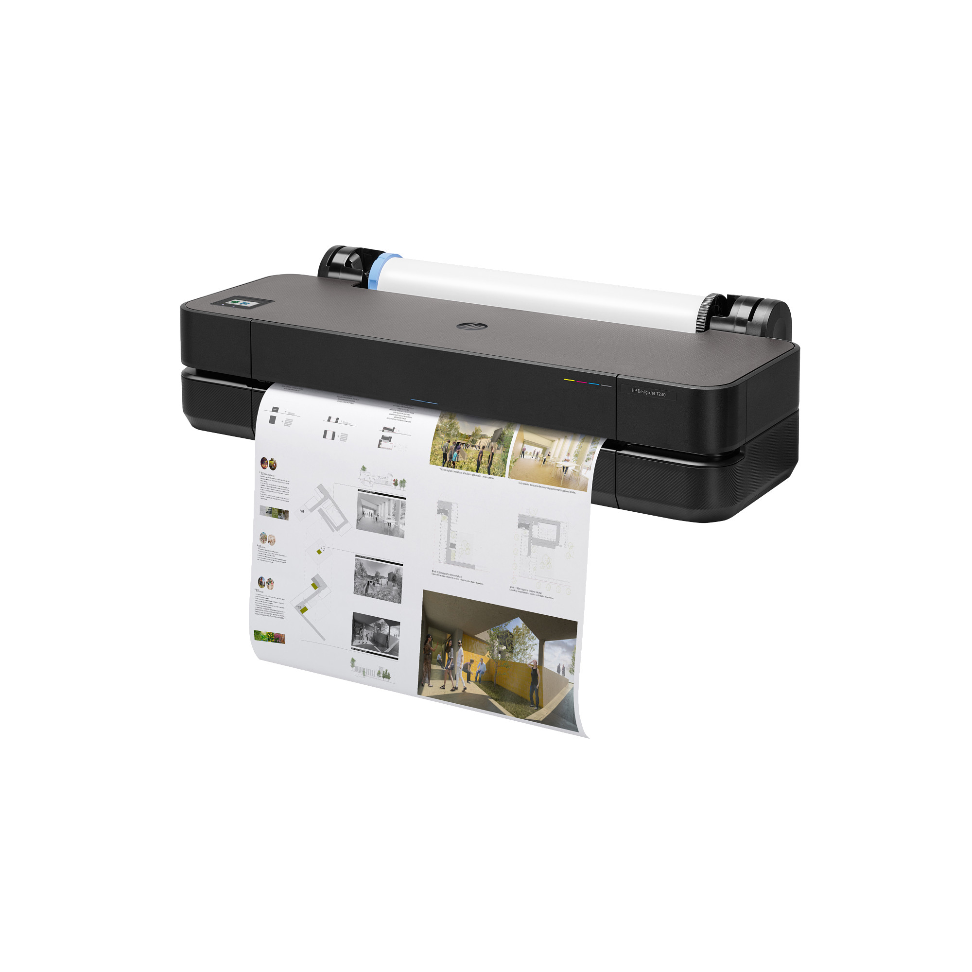 Obsah baleníTiskárna HP DesignJet T230 24”, tisková hlava, zaváděcí inkoustové kazety, vřeteno, stručná referenční příručka, instalační leták, napájecí kabel