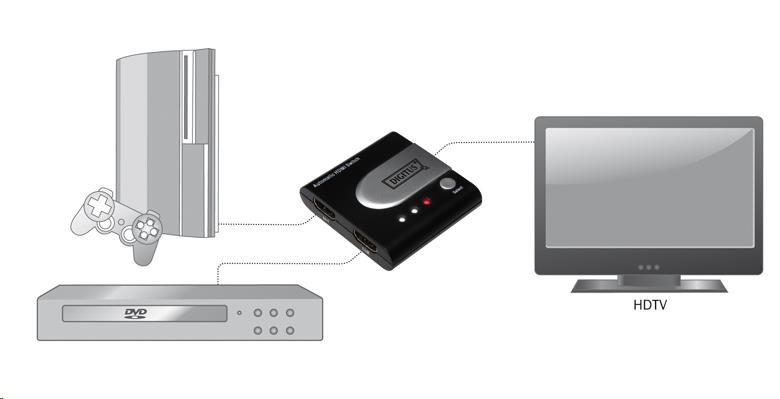 HDMI Switch 2 ->1 automatický  2 HDMI zařízení sdílejí 1 HDMI zařízení (obrazovku). Výběr zařízení je buď automaticky nebo tlačítkem. Podpora 20m HDMI kabelu na vstupu, až 25m HDMI kabelu na výstupu HDMI Switche.   Podpora 3D HDMI rolišení 480i, 480p, 720i, 720p,1080i a 1080p  Podpora modů VGA,SVGA,XGA,UXGA mode  HDMI 1.3b  8bit,10bit,a 12bit barevná hloubka na kanál Výběr vstupu tlačítkem / automaticky. Plug-and-play, není třeba software. - HDCP kompatibilní  V balení: 1x HDMI switch 1x 0.5m propojovací HDMI kabel.