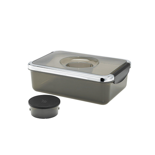 Pokud se neobjedete bez svého čerstvého a zdravého salátu ani na cestách, je pro vás struhadlo Salad-to-go to pravé. Tento malý kuchyňský pomocník naseká všechny druhy ovoce a zeleniny od mrkve po zelí, poradí si s tvrdými surovinami jako ořechy, a nakonec rozkrájí sýr rychlostí blesku do praktické cestovní misky, která je samozřejmě bez bisfenolu A. Mistička na dresing je připevněna do víčka. Salát tak zůstane čerstvý a křupavý a Vy do něj můžete přidat domácí dresing těsně před konzumací. Součástí struhadla je také 5 vyměnitelných nástavců z nerezové oceli Cromargan®, každý z nich k jinému použití.