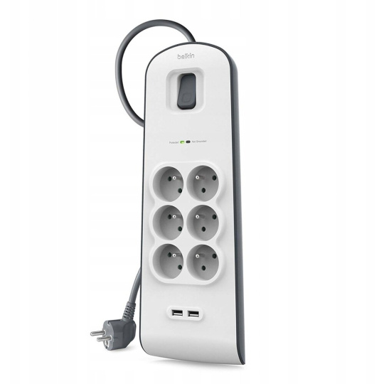 Belkin přepěťová ochrana BSV604, 6 zásuvek, 2xUSB/2.4A, 2m
