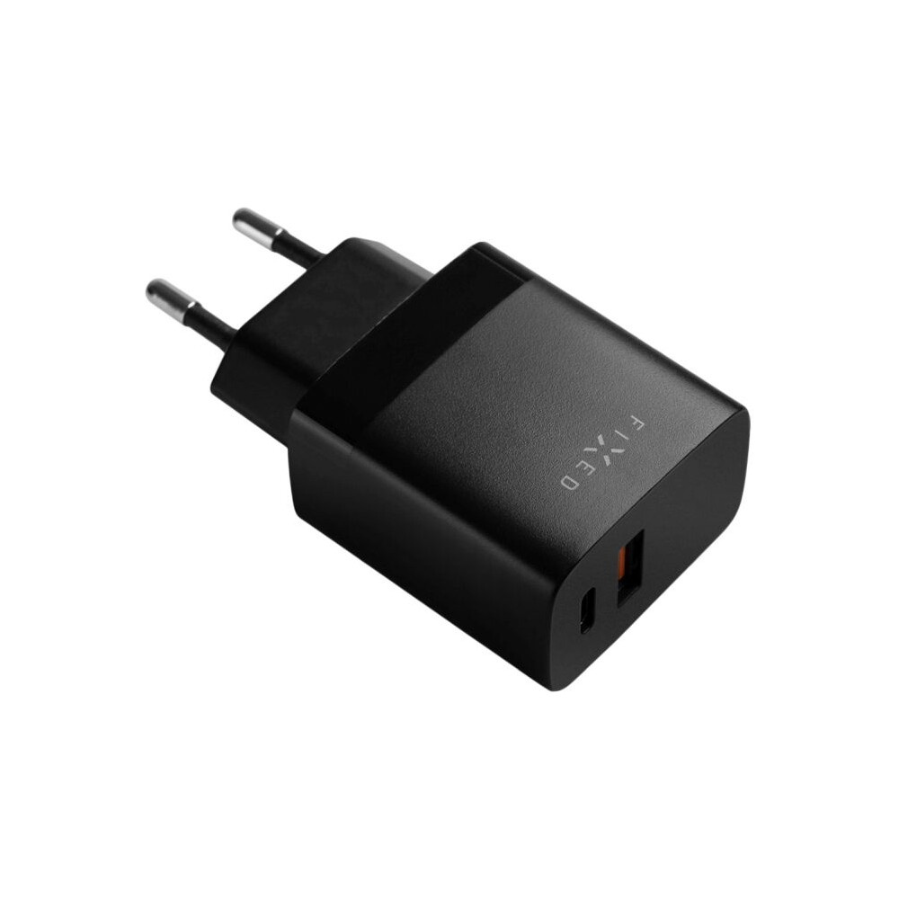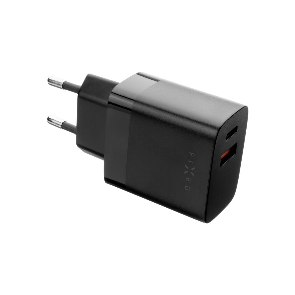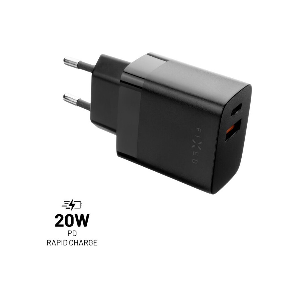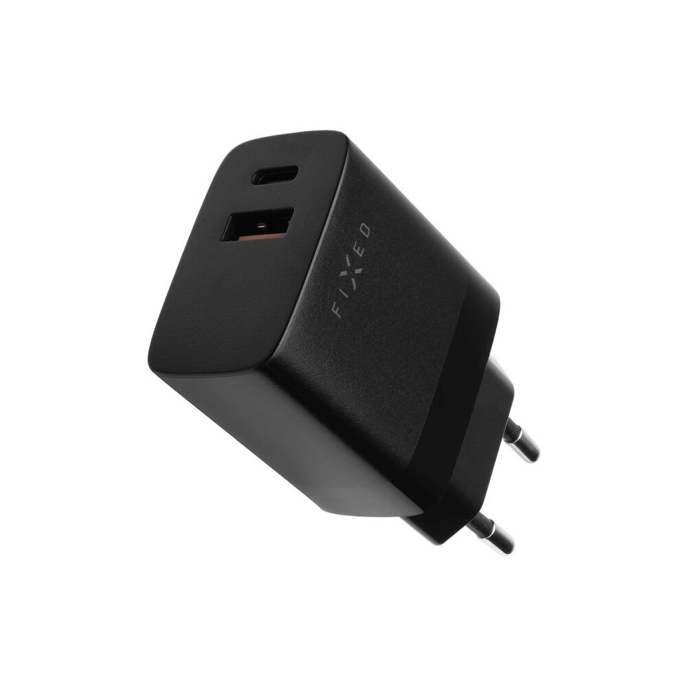 FIXED síťová nabíječka s USB-C a USB výstupem, podpora PD a QC 3.0, 20W, černá