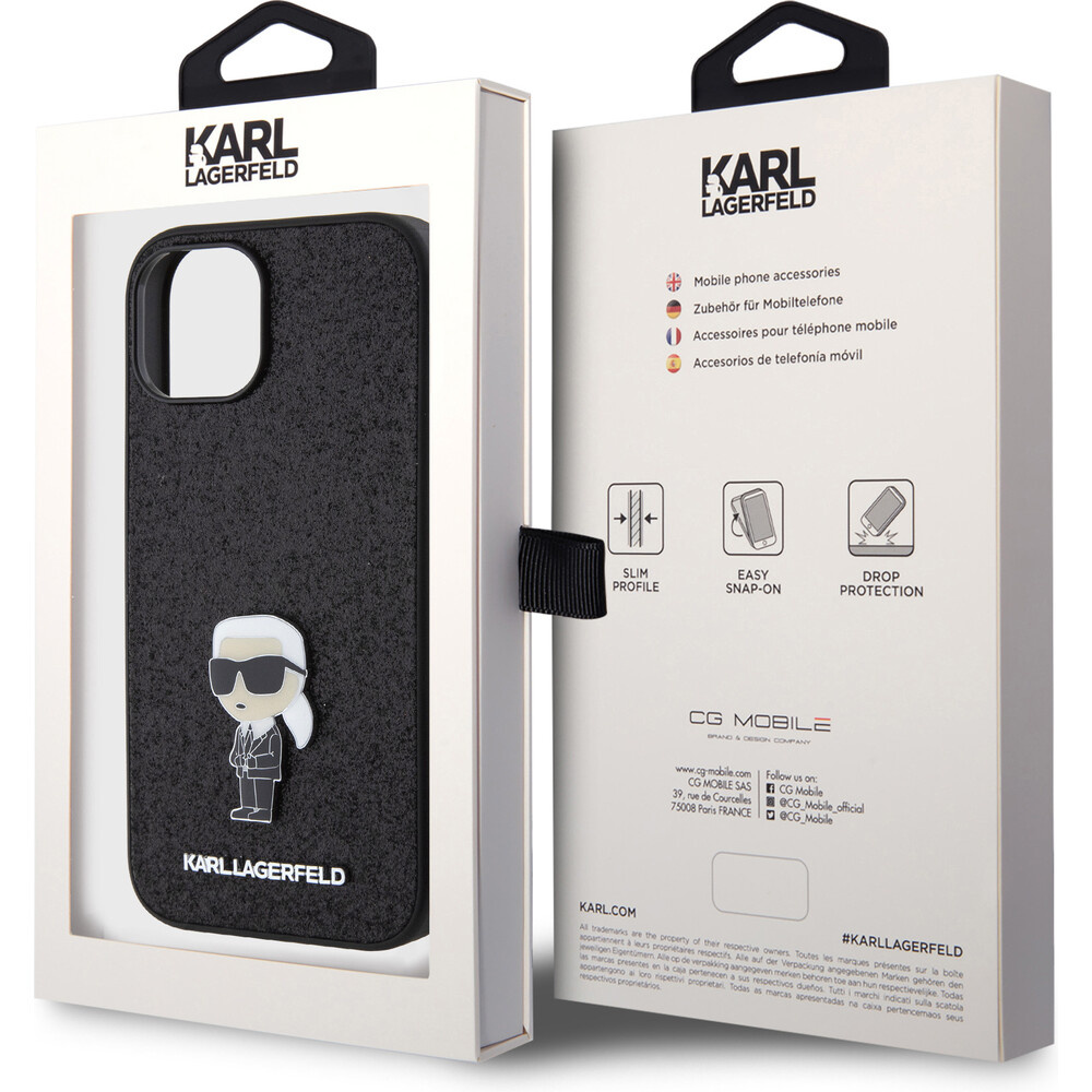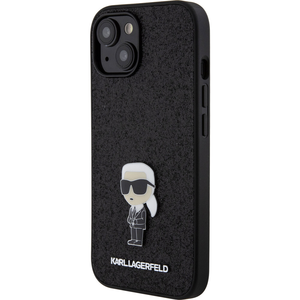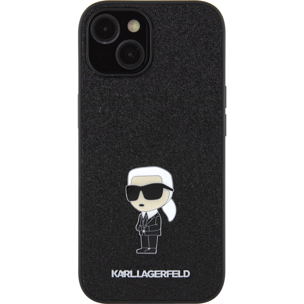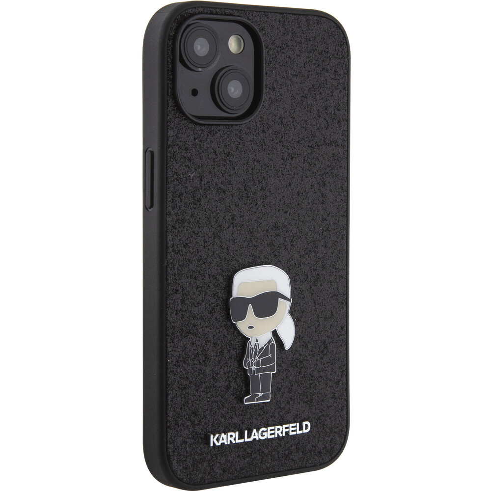 Karl Lagerfeld Fixed Glitter Metal Ikonik Kryt iPhone 15 černý