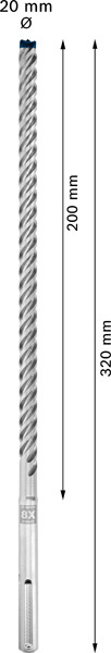 Vydrží až 3× déle než vrták Bosch SDS max-4 - Vrtání do železobetonu je náročná práce a tradičně si na vrtácích do kladiv vybírá svou daň. Dokonce i vrtáky se čtyřmi břity se rychle opotřebovávají. Kvůli výměně a dodávkám příslušenství tak vznikají prostoje. Celokarbidová hlava vrtáku EXPERT SDS max-8X je pokročilá konstrukce se 4 břity vyrobená z jednoho kusu toho nejtvrdšího kovu: Nezasekává se a do materiálu vrtá s chutí. Díky technologii Bosch Carbide Technology a celokarbidové hlavě vydrží vrták EXPERT SDS max-8X mnohem déle než běžné vrtáky do kladiv. Efektivně proráží výztuž v železobetonu, takže narazíte-li na ocel, není třeba zastavovat, znovu cílit ani měnit vrtáky. Stavebním profesionálům, kteří pravidelně vrtají do betonu a železobetonu, například kvůli instalaci kotev pro velké zatížení nebo kvůli nastavení výztuže, nabízí vrták Bosch EXPERT SDS max-8X do kladiv bezkonkurenční výkon, spolehlivost a dlouhou životnost. Jedná se o příslušenství EXPERT pro vrtací kladiva SDS max. Kompatibilní se všemi vrtacími kladivy SDS max.