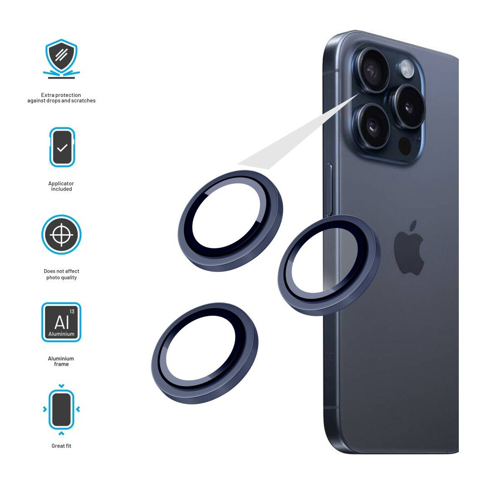 FIXED Camera Glass ochranná skla Apple iPhone 15 Pro/15 Pro Max tmavě modrá