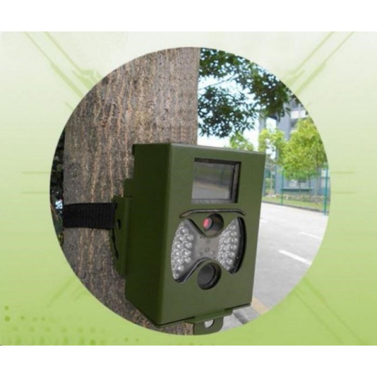 Robustní kovová schránka pro umístění Braun ScoutingCam Black 300 v terénu s možností uzamčení. Maskovací zbarvení, pevné uchycení pomocí kabelového zámku..