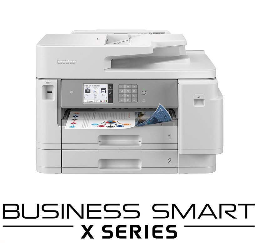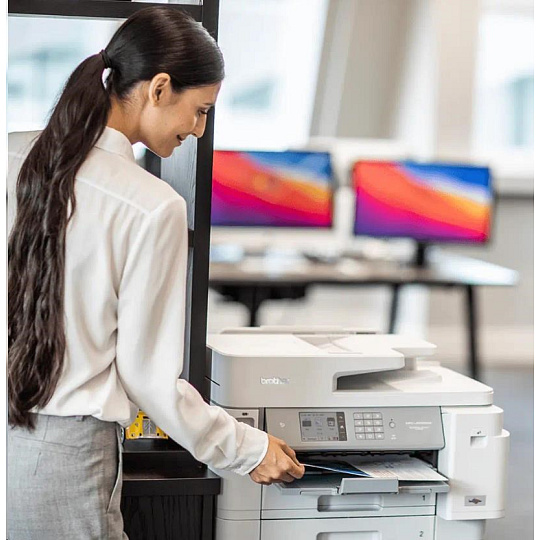 Tiskárna MFC-J5955DW kombinuje podnikové funkce a úsporu v jednom. Tisk až do formátu A3 a použití podavače dokumentů formátu A4 na 50 listů umožňuje mnohem rychlejší a snazší kopírování a skenování než dříve. Díky nejnovější technologii tiskové hlavy MAXIDRIVE bude vaše tiskárna fungovat kdykoliv budete potřebovat.