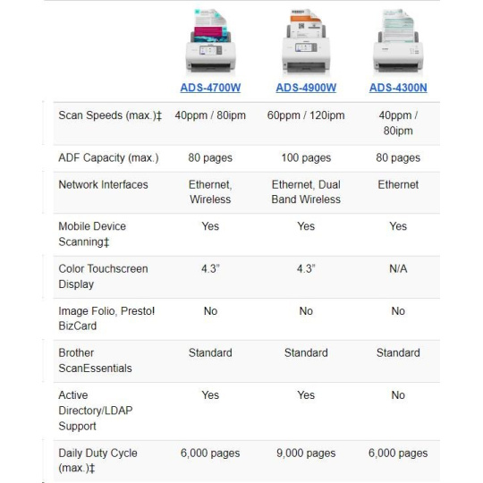 BROTHER skener ADS-4500W DUALSKEN A4 35ppm/70dual 600x600 60ADF USB LAN WIFI - display 7.1cm