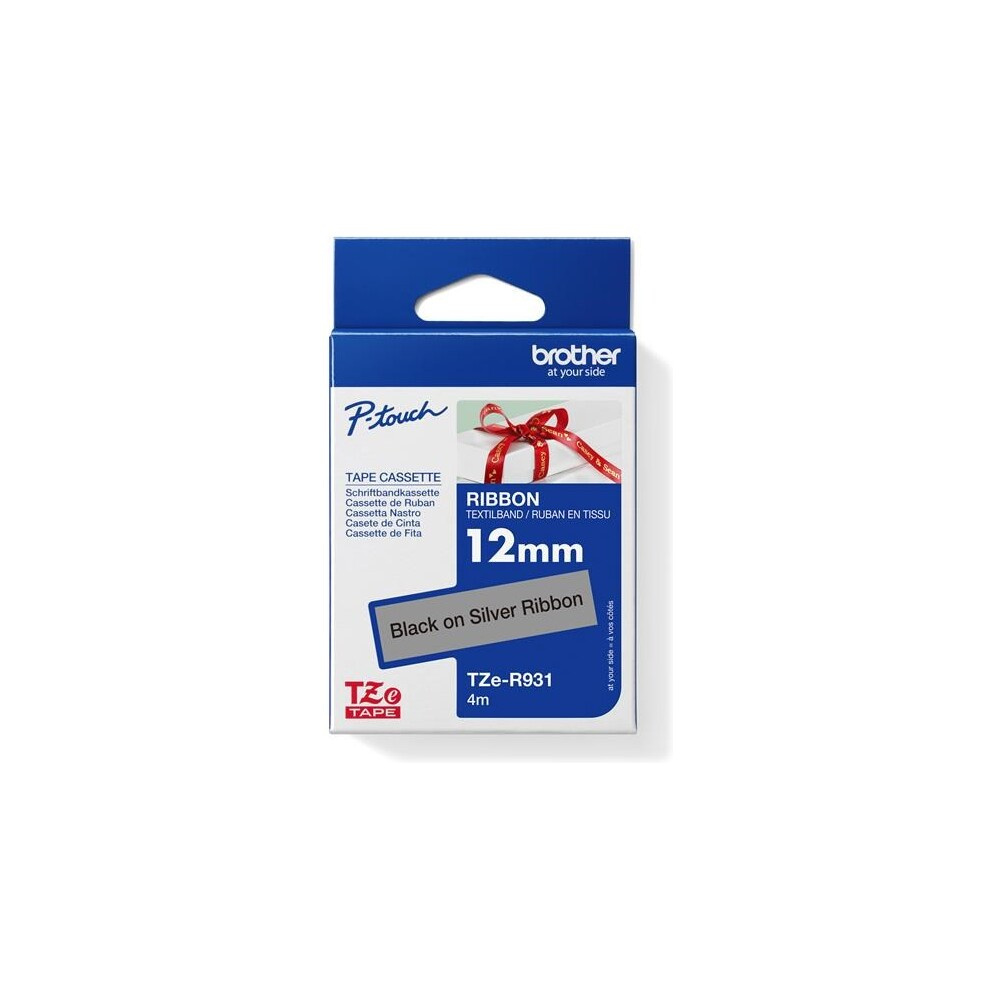 Brother TZe-R931 textilní páska černá na stříbrném 12 mm