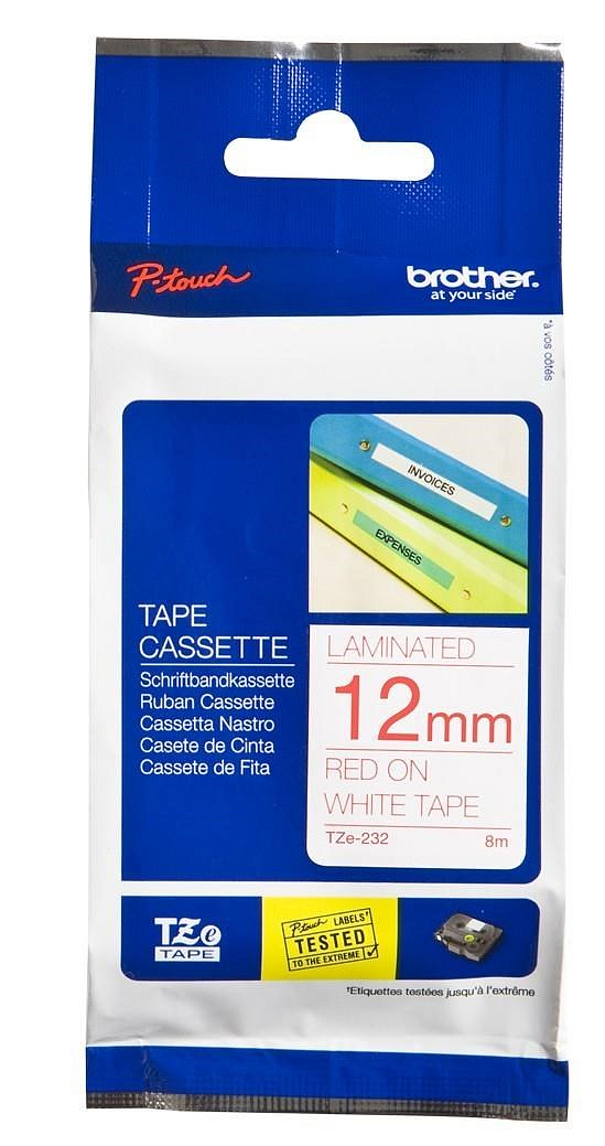 BROTHER TZE232 - kazeta TZ šířky 12mm, laminovaná TZE-232, bílá/červené písmo