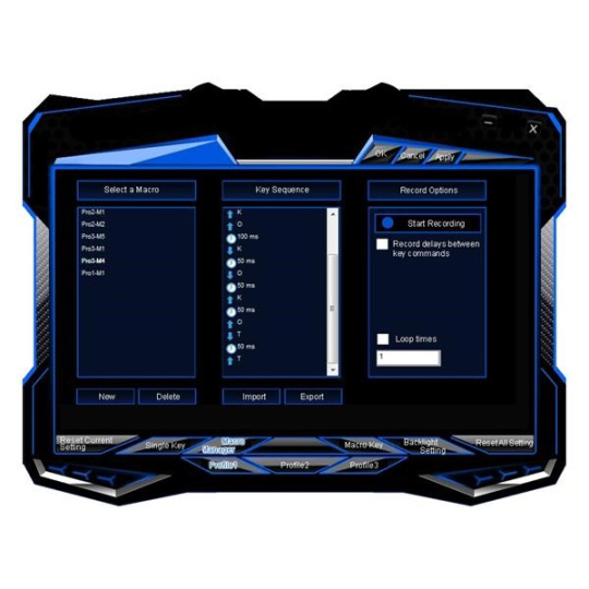 Live macro recording - pomocí této funkce lze nahrávat makra přímo z klávesnice a rovnou je i přidělovat konkrétní klávese