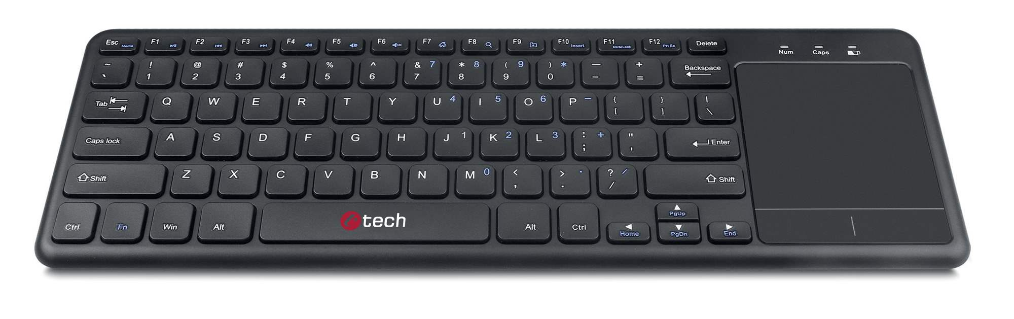 C-TECH klávesnice WLTK-01, bezdrátová s touchpadem, černá, USB