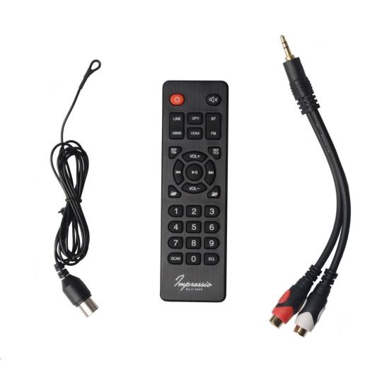 V pohodlí Vašeho obývacího pokoje asi nebudete sedět přímo u reproduktoru, proto budete častěji k jeho ovládání používat dodaný dálkový ovladač. Ten zvládne většinu funkcí, jako je: upravení hlasitosti, volba skladby nebo FM stanice, spuštění a přerušení přehrávání, nebo volbu zdroje zvuku mezi Bluetooth, FM rádiem, pamětí USB, nebo SD kartou a LINE-IN vstupem, optickým a koaxiálním vstupem.
