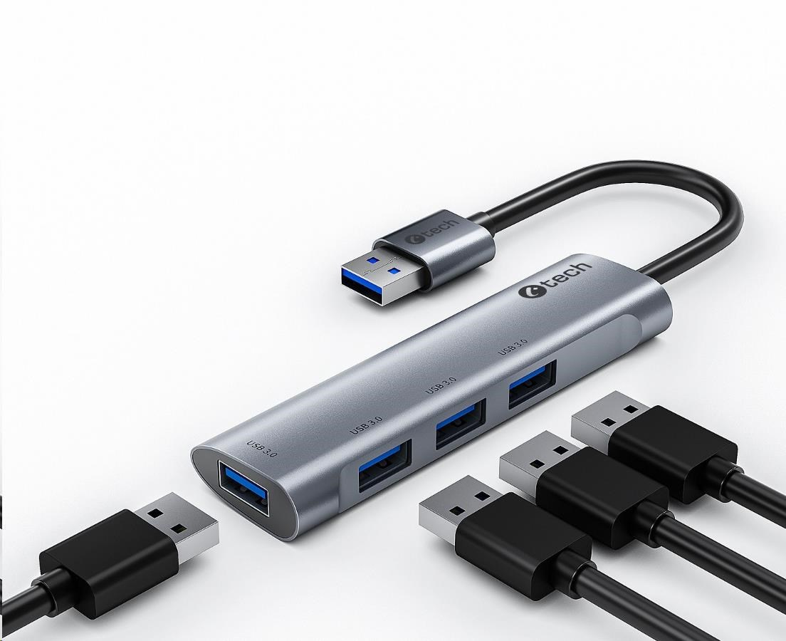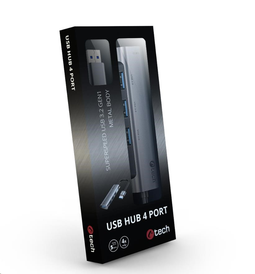 HUB USB C-tech UHB-U3-AL, 4x USB 3.2 Gen 1, hliníkové tělo