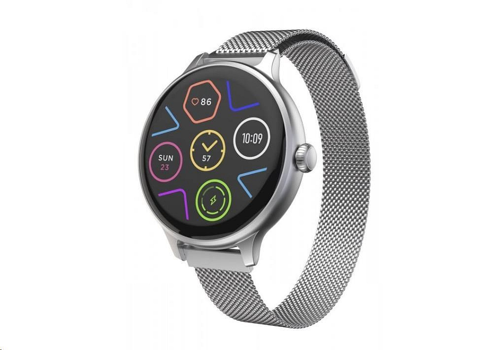 Luxusní fitness hodinky CARNEO HERO mini HR+ s Milánským, kovovým řemínkem s barevným Super HD AMOLED displejem. Monitorují vaši denní aktivitu, výšku stresu a lze je spárovat s mobilním telefonem, díky čemuž Vás upozorní na příchozí hovor či SMS. Jejich dokonalé, minimalistické kovové tělo s jednoduchými křivkami je tak návykové, že je nebudete chtít po prvním nošení sundat z ruky. Hodinky Vám umožňují vyřídit telefonický hovor přes zabudovaný mikrofon a reproduktor, pokud budete v dosahu spárovaného telefonu (vzdálenost až 10 metrů).