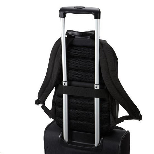 - Popruh, jenž bezpečně připevní batoh k většině cestovních kufrů s kolečky.