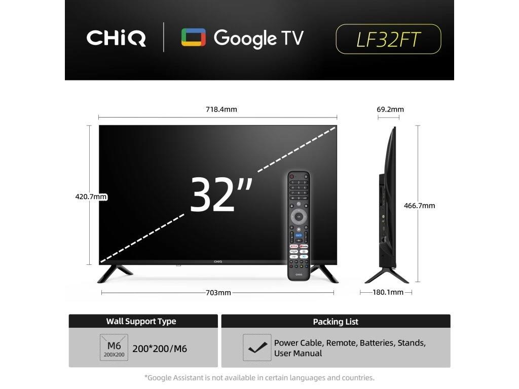 CHiQ LF32FT TV 32", FHD, smart, Google TV, dbx-tv, Dolby Audio, Frameless