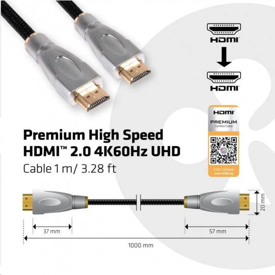 Club-3D Premium High Speed HDMI 2.0 4K60Hz UHD Cable 1m/3.28ft