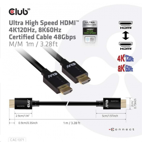 Product Name: Club3D Kabel HDMI 2.1 Ultra High Speed 4K 8K60Hz 48Gbps (M/M), 1m