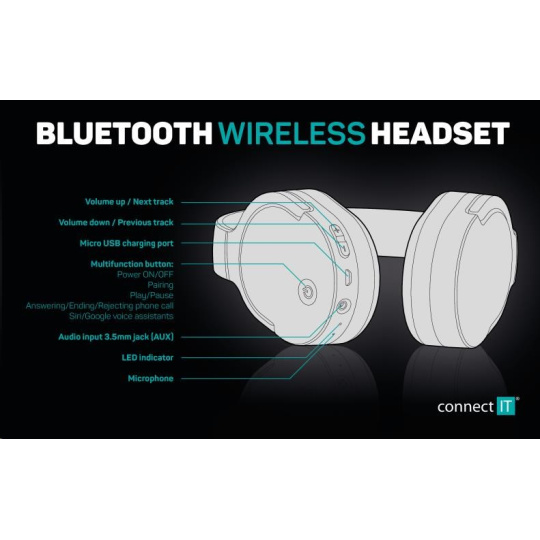 CONNECT IT bezdrátová náhlavní sluchátka, ČERNÁ