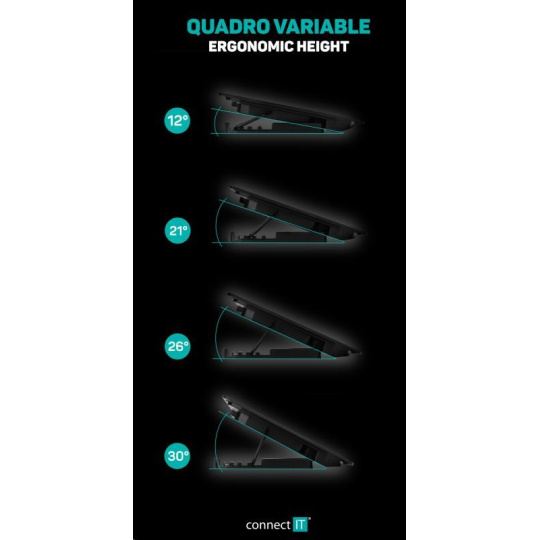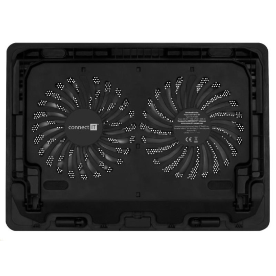 Chladicí podložka pod notebook CONNECT IT "FrostBreeze" CCP-1910-BK, která vybavená dvěma ventilátory s modrým LED podsvícením, celokovovou chladící mřížkou a výškovým čtyřstupňovým polohováním. Kompatibilní s notebooky do 15,6".