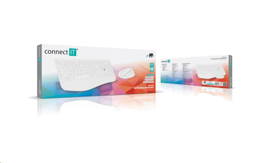 CONNECT IT Combo bezdrátová bílá klávesnice + myš, (+1x AAA +1x AA baterie zdarma), CZ + SK layout