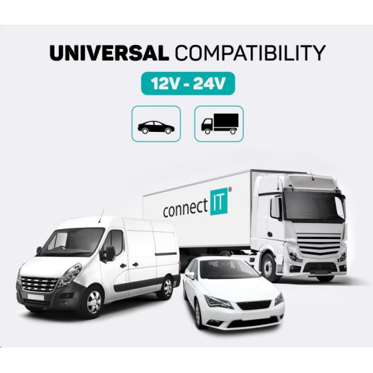 - Kompatibilní se všemi 12/24 V zásuvkami cigaretového zapalovače v osobních i nákladních automobilech
